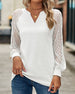 V-ringad spetspanel långärmad topp