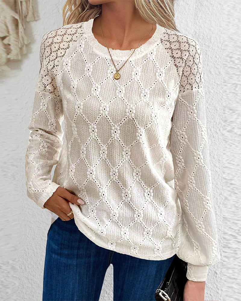 Elegant topp med spets och långa ärmar