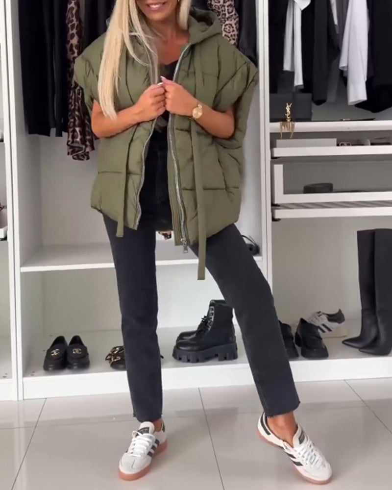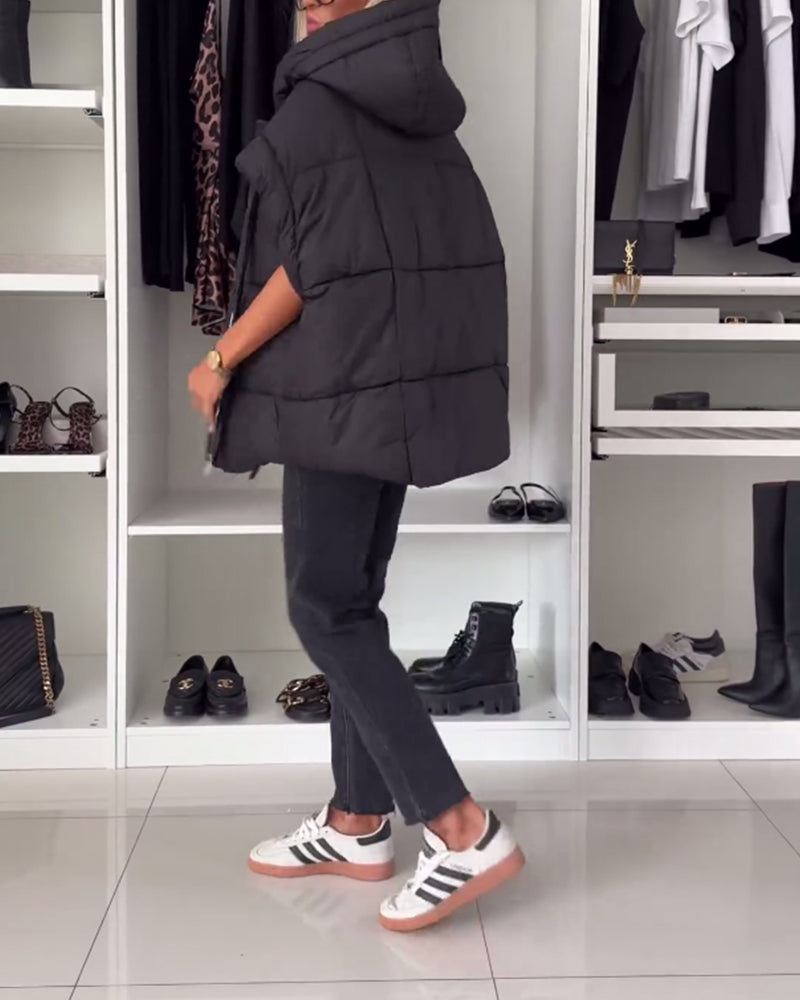 Hooded enfärgad dragkedja med kort ärm vadderade jackor