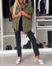 Avslappnad jeansjacka med knäppning i lapel med lång ärm