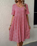 Klänning Kort Ärms Krage Enfärgad Knappar