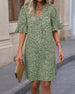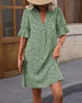Avslappnad klänning med V-ringad halvärm med tryck