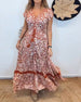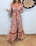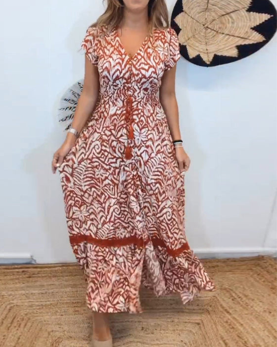 Casual klänning med leopard och färgglatt tryck och djupt V