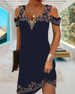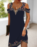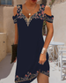 Casual klänning med leopard och färgglatt tryck och djupt V