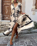 Casual klänning med leopard och färgglatt tryck och djupt V