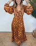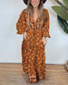 Casual klänning med leopard och färgglatt tryck och djupt V