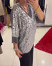 Avslappnad plisserad topp med paljetter i enfärgad patchwork