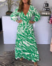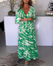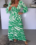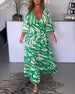 Casual klänning med leopard och färgglatt tryck och djupt V