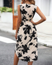Avslappnad leopardmönstrad ficka med rund hals och breda byxor