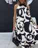 Avslappnad blommig rund halsad långärmad ihålig tröja