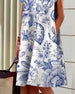 Avslappnad klänning med huva i ficka i färg med blocktryck