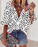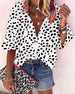 Casual klänning med leopard och färgglatt tryck och djupt V