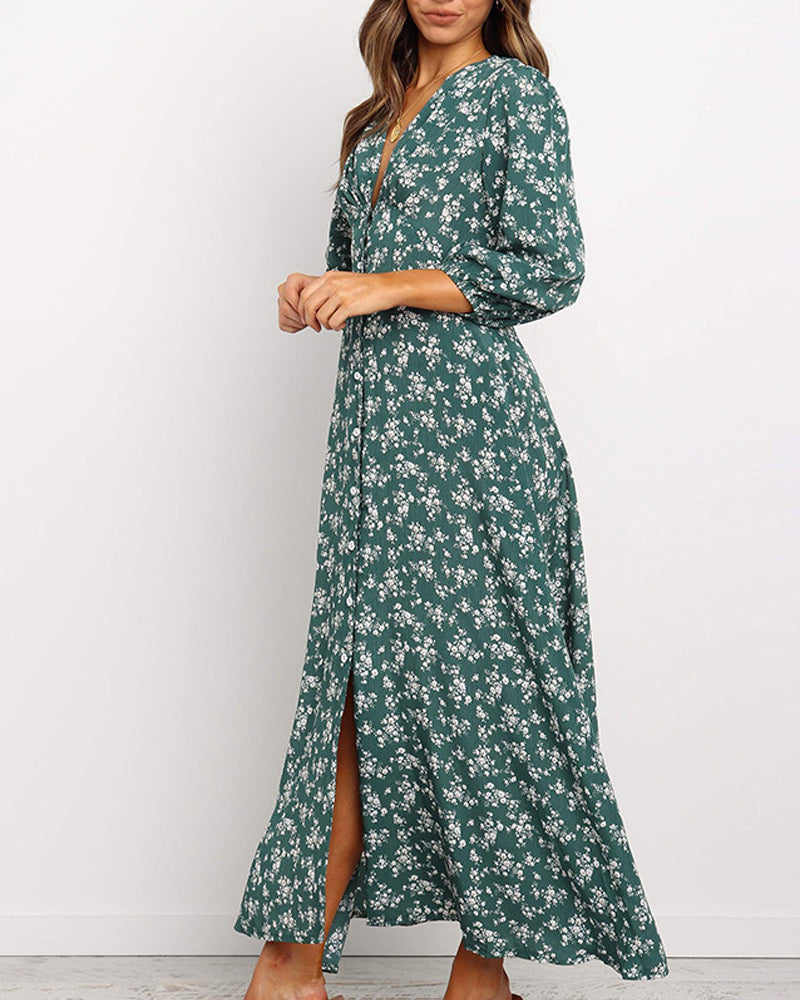 Sjuärmad semesterklänning med V-ringning