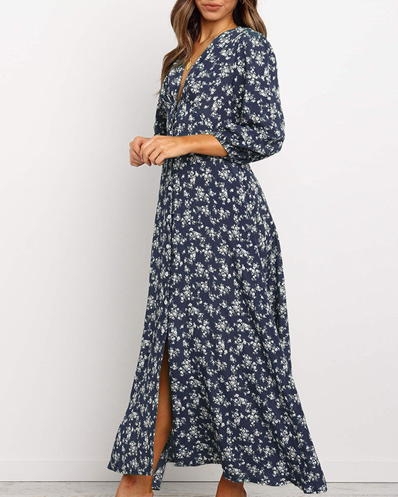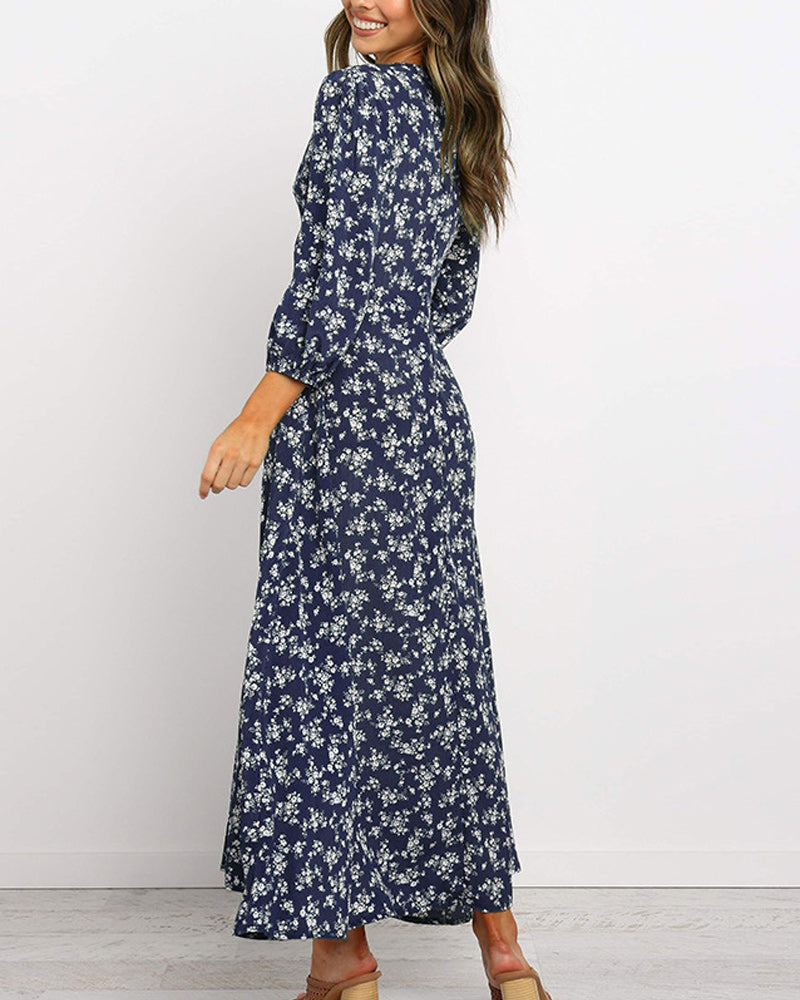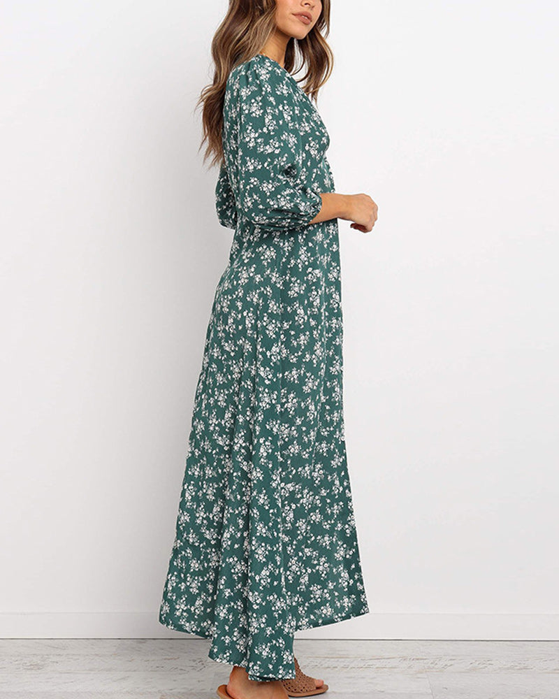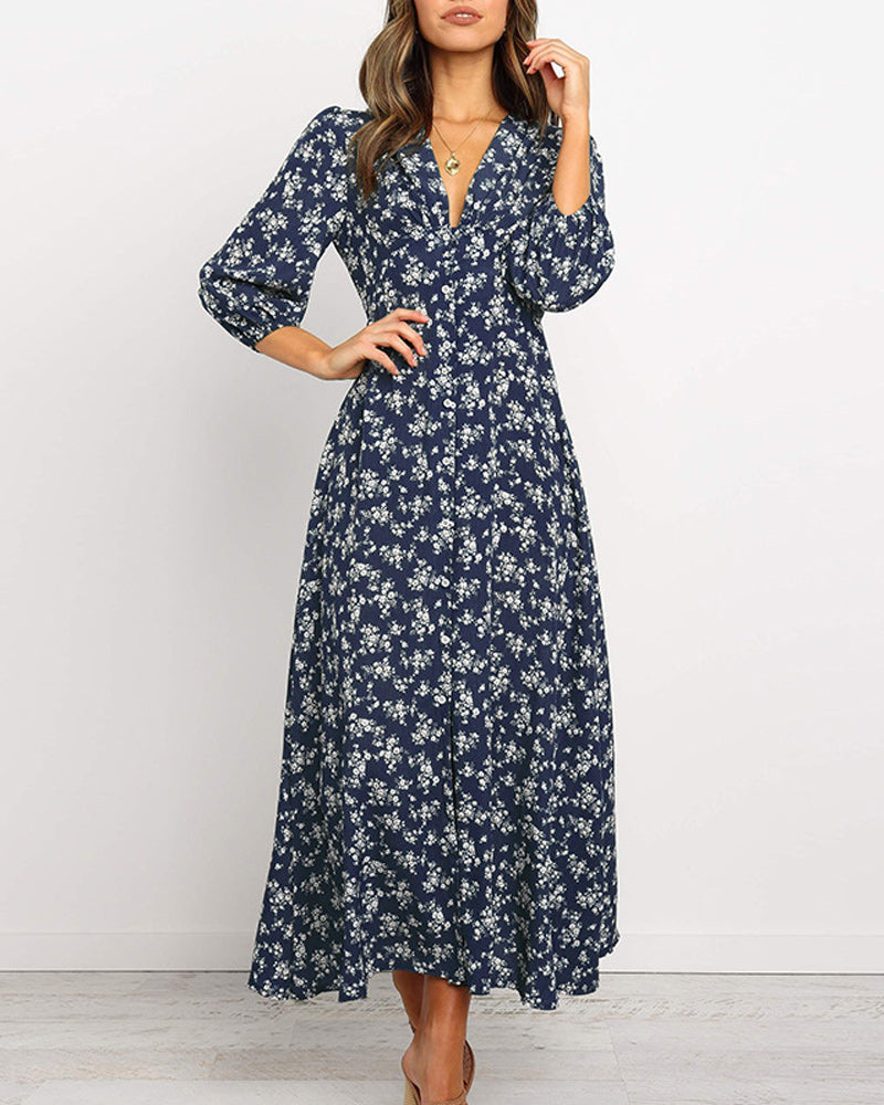 Maxiklänning med v-ringning tryck