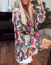 Leopardmönstrat lapel casual lång kappa