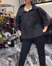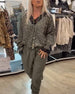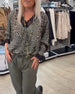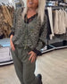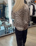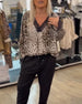 Moderiktig leopardmönstrad blus med V-ringad spets med patchwork