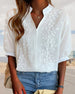 SPECIFIKATIONER Topptyp: Blusar Stil: Enkel Material: Bomullsblandningar, Spets Tillfälle: Dagligen Urringning: V-hals_V Mönstertyp: Enfärgade Typ av ärm: Puffärm Ärmlängd: 3/4 ärm Passform typ: Vanlig Säsong: Vår, Sommar, Höst Detaljer: Lappverk, Urgröpande Paketet innehåller: 1 x Blus STORLEKSTABELL(cm) Storlek Byst Längd Armlän...