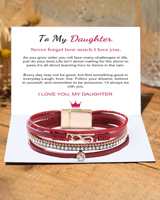 • ARMBAND BETYDER: ''Kärleken mellan oss är för evigt'' Armbandet med oändlighetssymbol betyder kärlek och styrka, vilket ger dig självförtroende att tappert möta dem när du stöter på motgångar och svårigheter. Dessa läderarmband för kvinnor kan vara som påminner om att hon alltid är med dig, visar kärleken mellan mamma och dotter, kärlek mellan parälskare