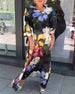 Avslappnad blommig rund halsad långärmad ihålig tröja