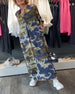Casual klänning med leopard och färgglatt tryck och djupt V