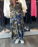 Avslappnad leopardmönstrad ficka med rund hals och breda byxor