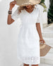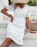 Klänning Kort Ärms Krage Enfärgad Knappar