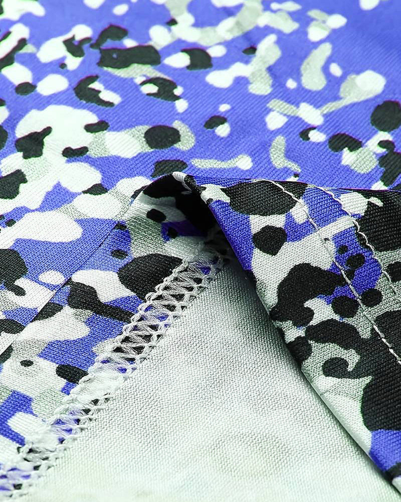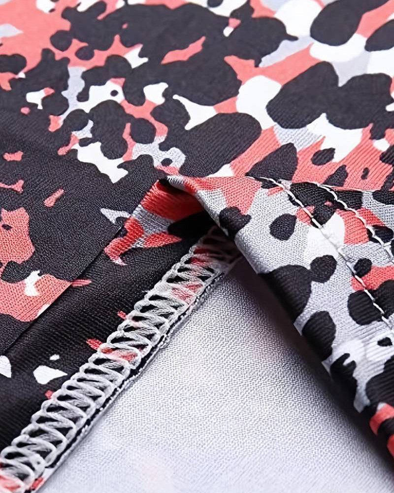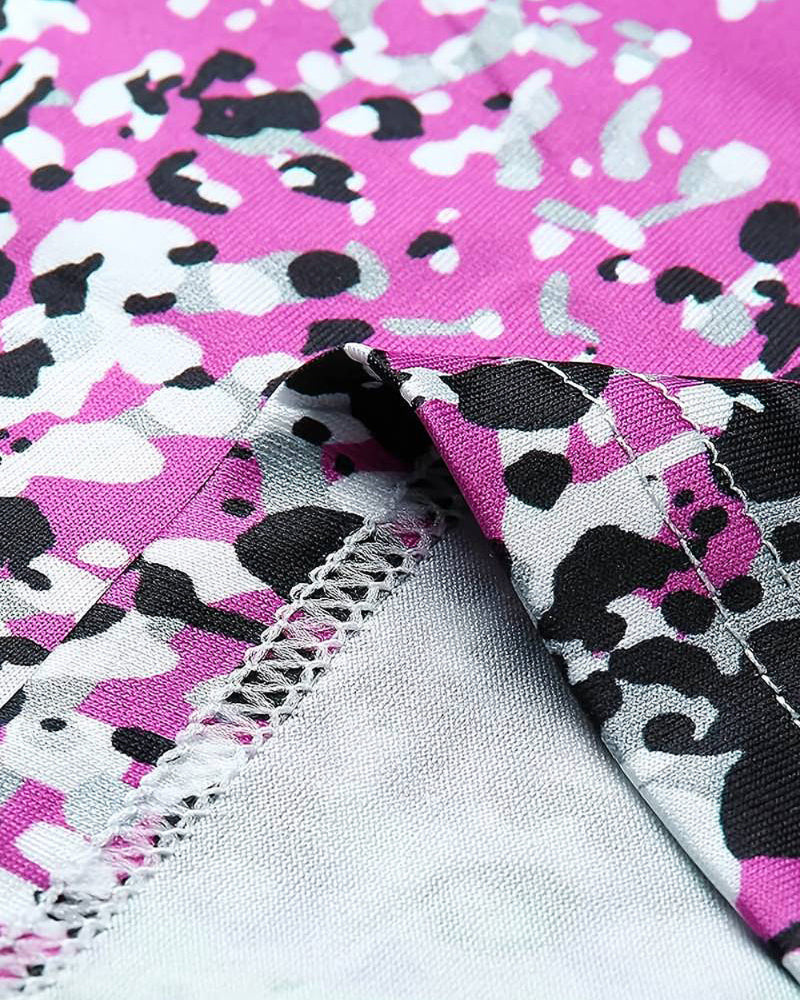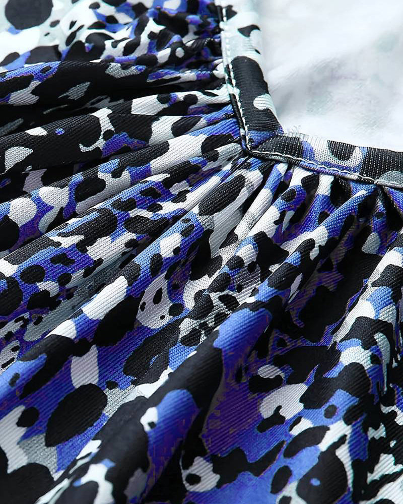 Casual klänning med leopard och färgglatt tryck och djupt V