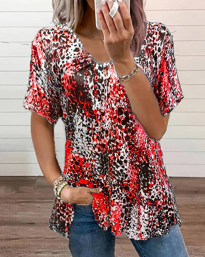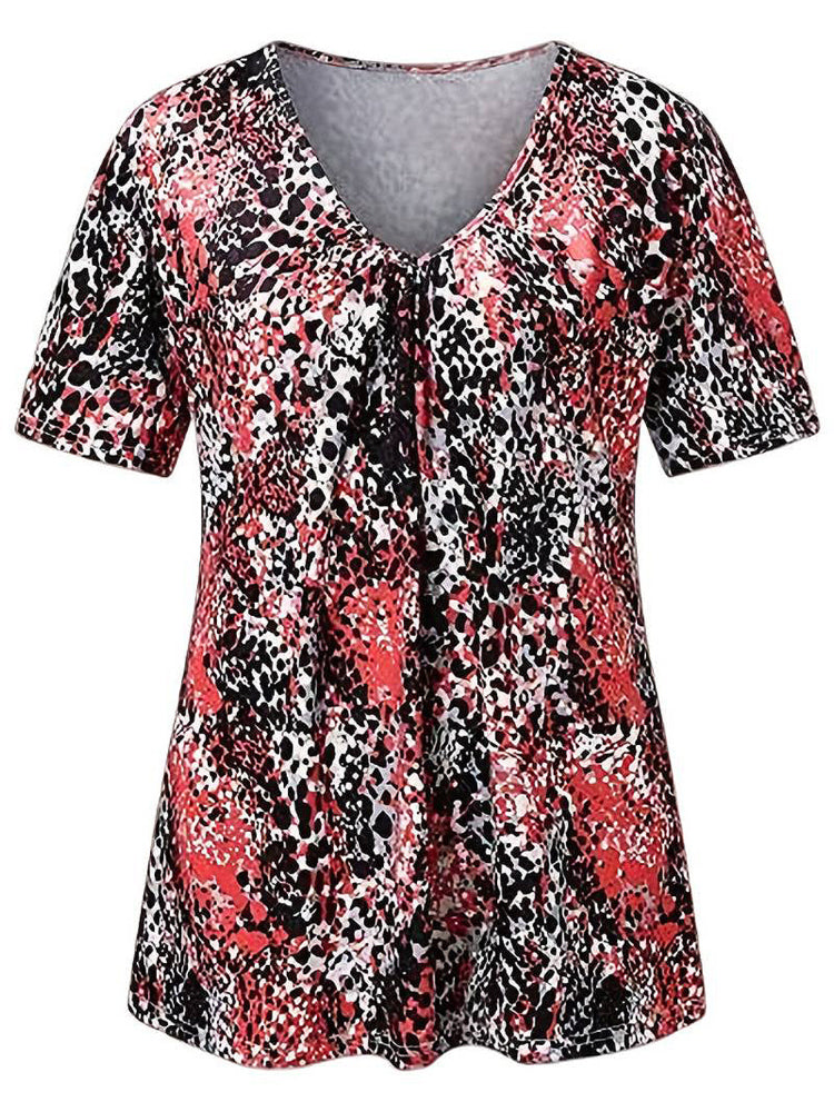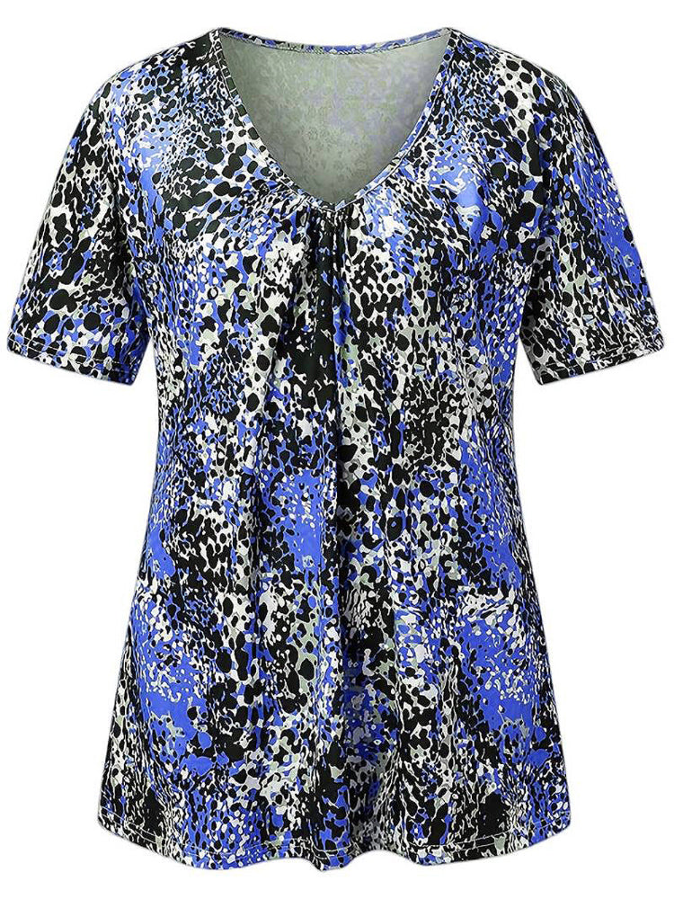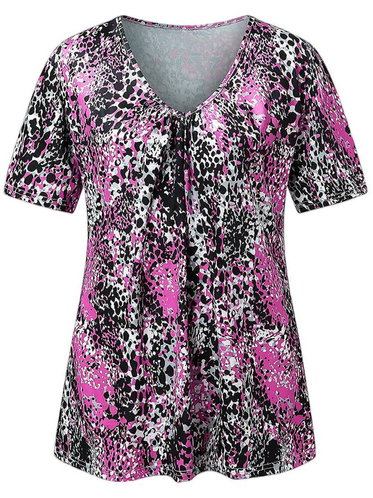 -19% Rynkad v-ringad topp i leopardmönster och korta armar