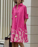 Casual klänning med leopard och färgglatt tryck och djupt V