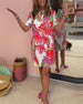 Casual klänning med leopard och färgglatt tryck och djupt V