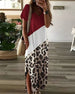 Avslappnad klänning med färgblock och leopardtryck