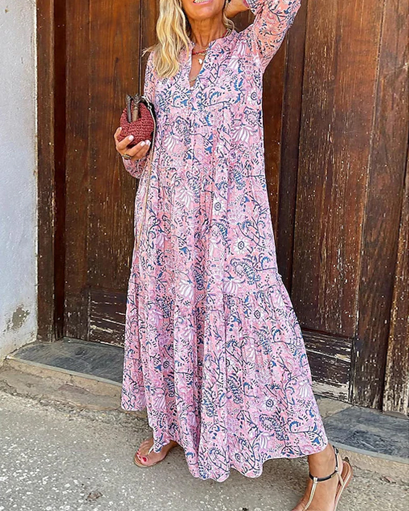 Maxiklänning med v-ringning tryck