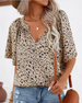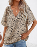 Casual klänning med leopard och färgglatt tryck och djupt V