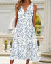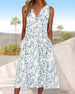 Tryckt ärmlös elegant klänning med V-ringad