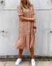 Elegant klänning i lager med prickiga tryck