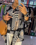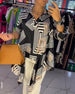 Avslappnad leopardmönstrad ficka med rund hals och breda byxor