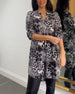 Casual klänning med leopard och färgglatt tryck och djupt V