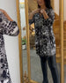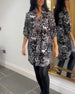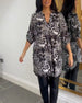 Avslappnad leopardmönstrad ficka med rund hals och breda byxor