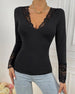 Moderiktig enfärgad blus med V-ringad lyktaärm