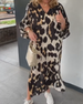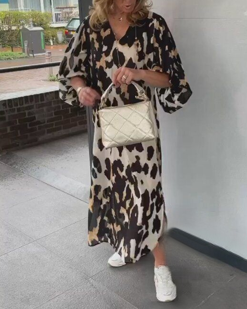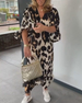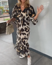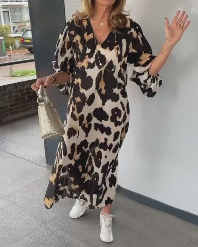 Casual klänning med leopard och färgglatt tryck och djupt V
