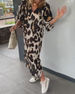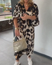 Avslappnad leopardmönstrad ficka med rund hals och breda byxor