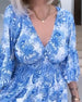 Tryckt flytande klänning med V-ringning och skärp