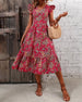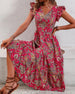 Casual klänning med leopard och färgglatt tryck och djupt V