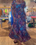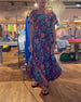 Avslappnad klänning med huva i ficka i färg med blocktryck
