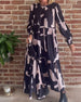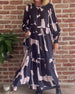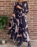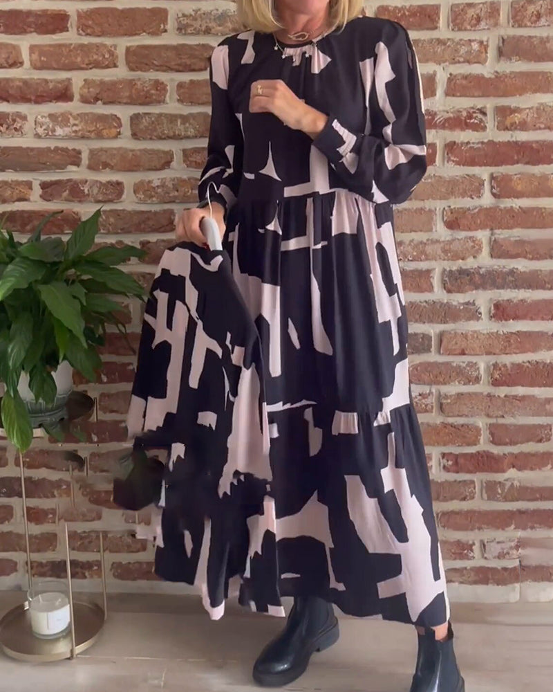 Tryckt långärmad maxiklänning