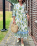 Casual klänning med leopard och färgglatt tryck och djupt V