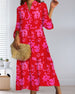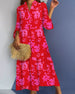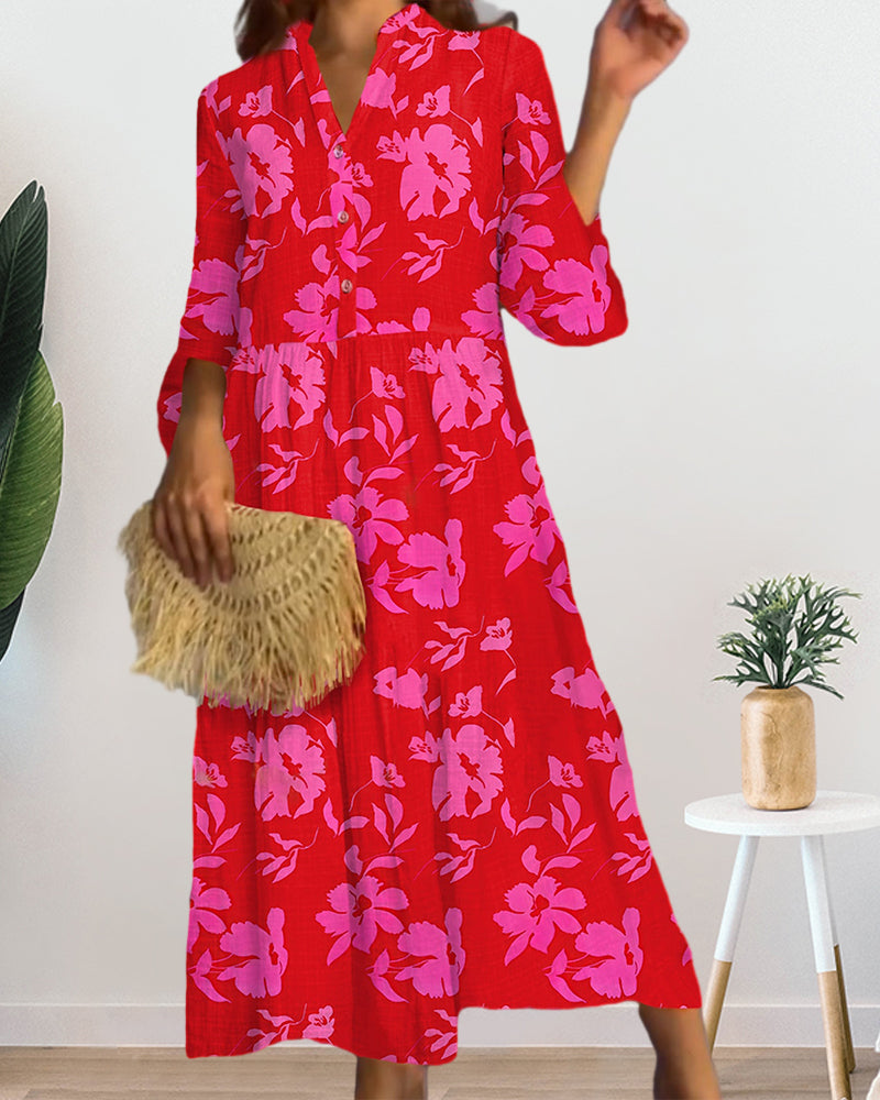 Casual klänning med leopard och färgglatt tryck och djupt V