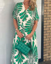Casual klänning med leopard och färgglatt tryck och djupt V