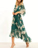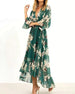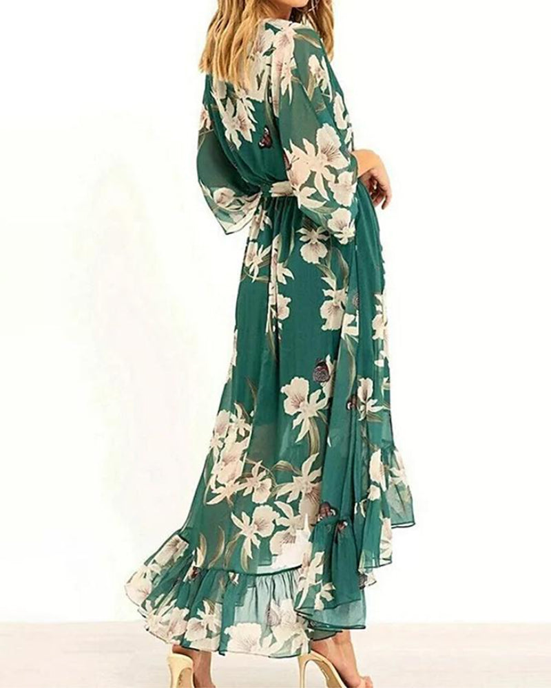 V-ringad klänning med delad ärm för semestertryck