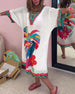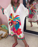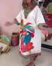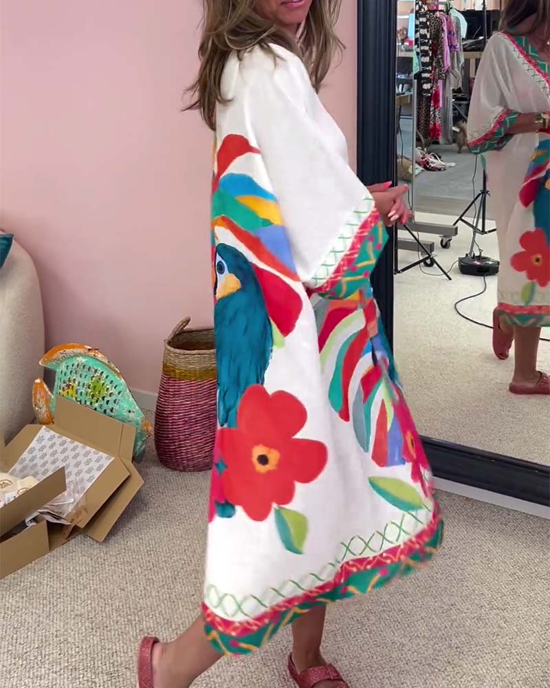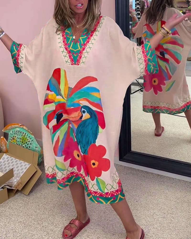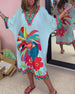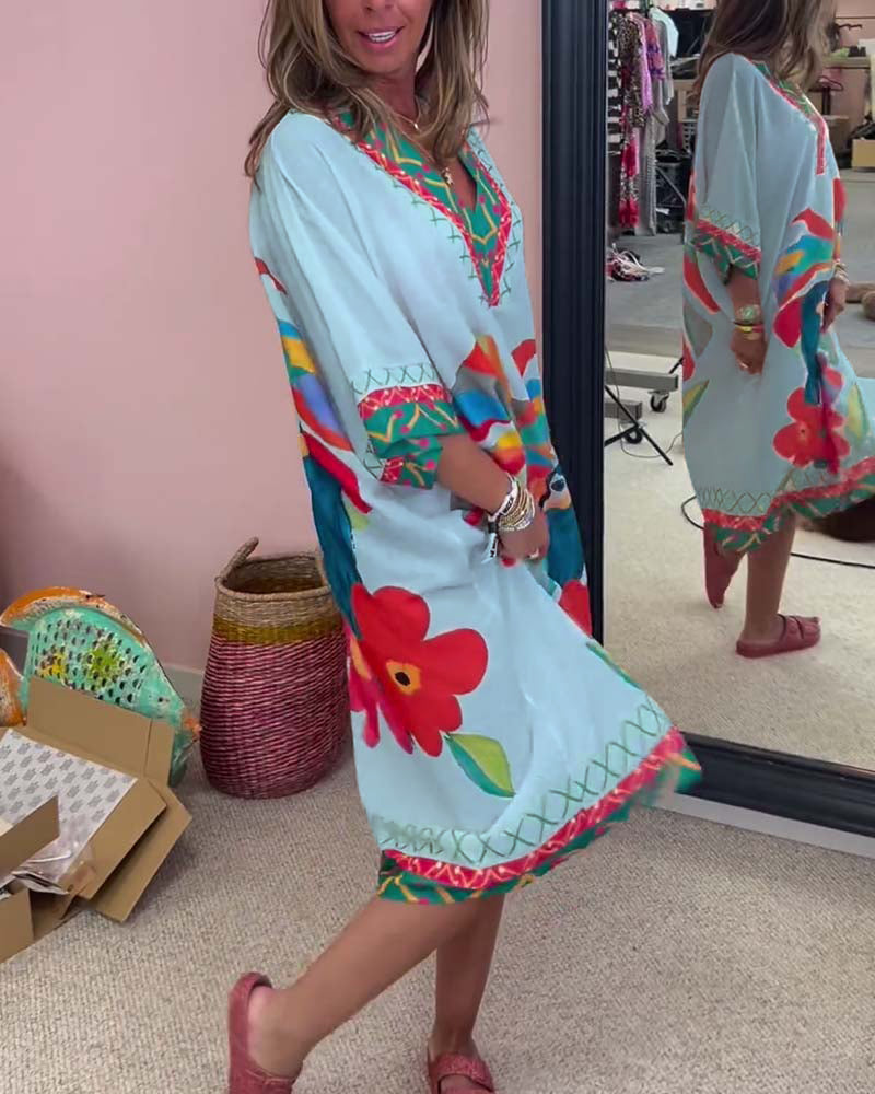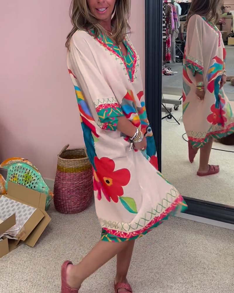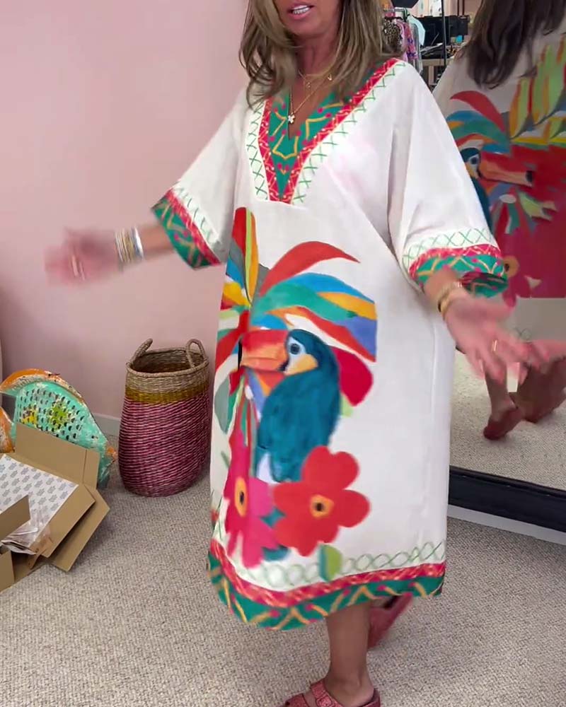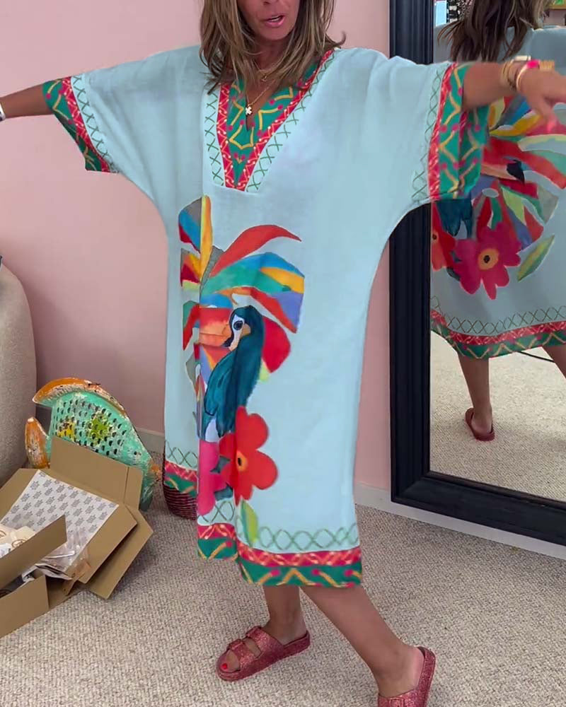 Casual klänning med leopard och färgglatt tryck och djupt V